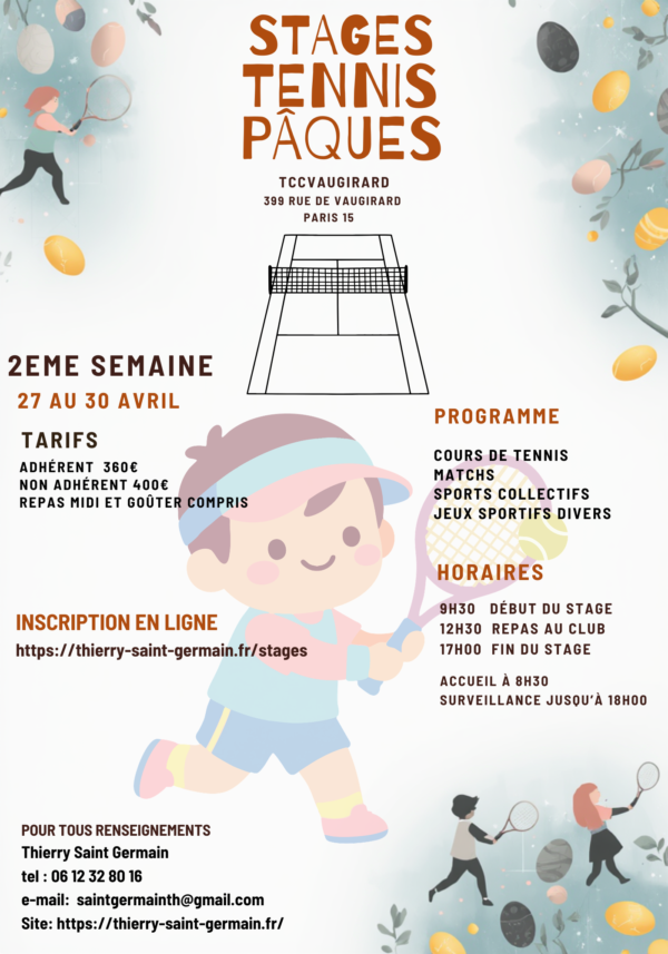 Stage de tennis de 5 à 15 ans, tous niveaux,